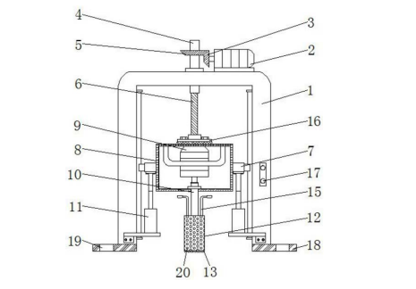 目前在對土壤進行取樣時,大多都采用普通的手動取樣器進行人工取樣,然而,這 樣的取樣方式取樣效率較低,且取樣十分費力,每次取樣人員在的待修復的土壤進行取樣 時都會花費取樣人員大量的工作時間,增加了取樣人員的工作負擔,降低了取樣人員的工 作效率,不能實現既快速又方便的進行取樣,從而給人們的土壤修復工作帶來了極大的不 便。 針對現有技術的不提供了一種用土壤修復設備取樣裝置,解決了取樣 效率較低,且取樣十分費力,不能實現既快速又方便進行取樣的問題。 這種用土壤修復取樣裝置,包括U型支撐架,所述U型支撐架的頂部通過連接塊固定連接有升降電機,所述升降電機輸出軸的外表面套設有第一錐齒輪,U型支撐架的頂部且位于升降電機的一側通過軸承轉動連接有螺紋套筒,螺紋套筒的底部貫穿U型支撐架并延伸至U型支撐架的內部,螺紋套筒位于U型支撐架頂部的外表面套設有與第一錐齒輪相互嚙合第二錐齒輪,本實用新型涉及土壤修復設備技術領域。該土壤修復用取樣裝置,大大提高了取樣效率,節省了大量勞動力,無需花費取樣人員大量的工作時間,減輕了取樣人員的工作負擔,實現了既快速又方便的對待修復土壤進行取樣,從而大大方便了人們的土壤修復工作。
